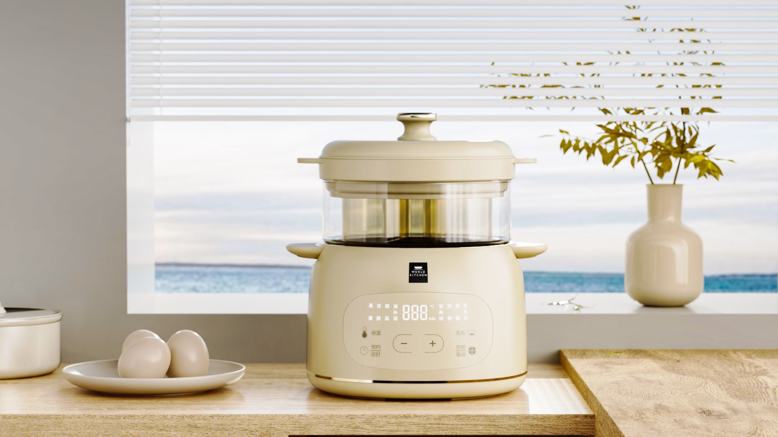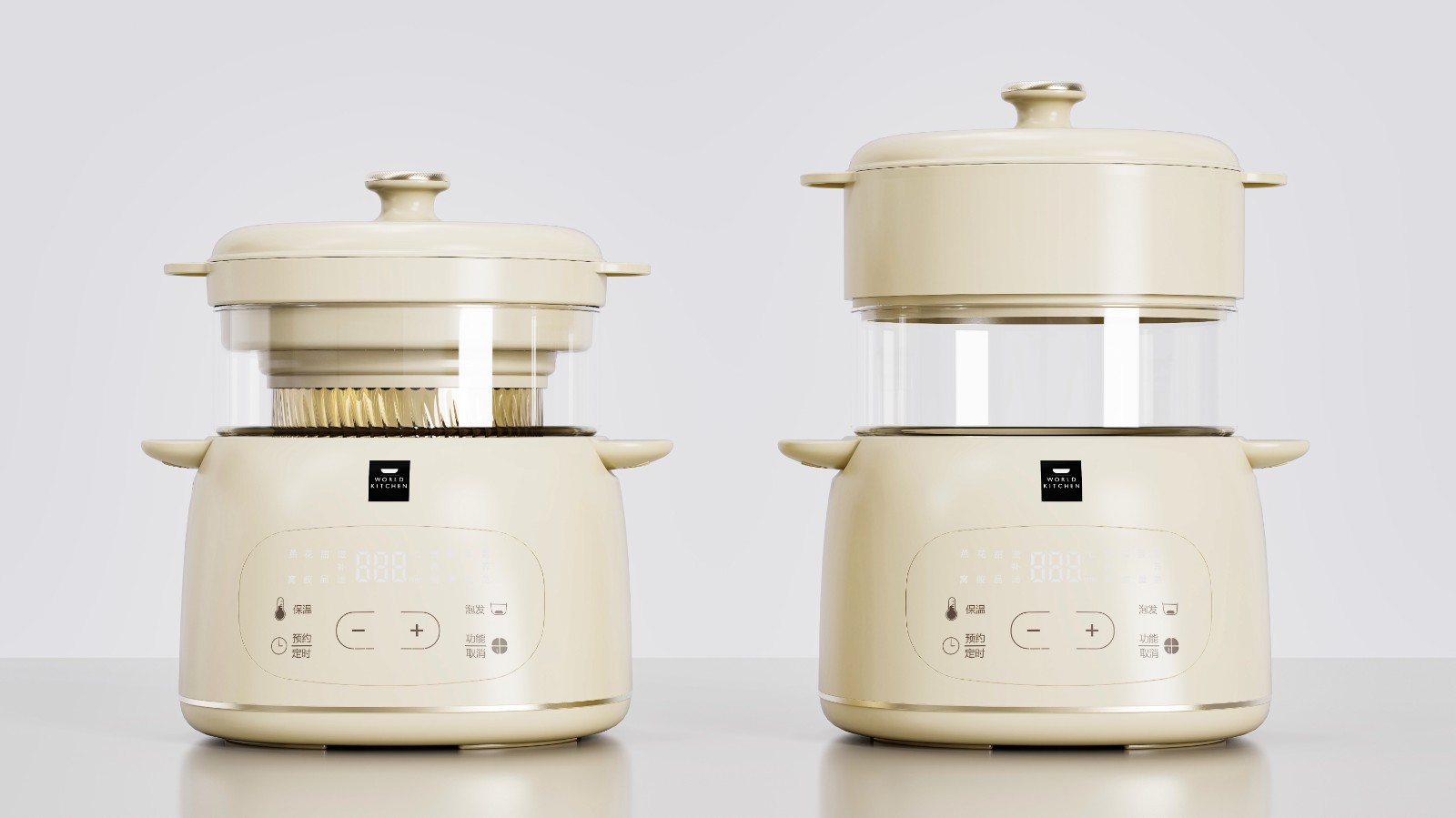 up design 携手「康宁」打破传统电炖锅的沉闷形象,以全新的视觉语言,重新定义关于健康、美味与美感的厨房炖煮艺术。我们采用「康宁」独有的耐热玻璃材质,让烹饪过程变得可视化,不仅赋予了电炖锅极高的颜值,更为电炖锅增添了一份时尚感。既保留了传统炖煮文化的精髓——慢工出细活,又巧妙融入了现代极简主义的设计风格,简洁流畅的线条与透明的材质相得益彰,既彰显了电炖锅的科技感,又不失温馨的生活气息。