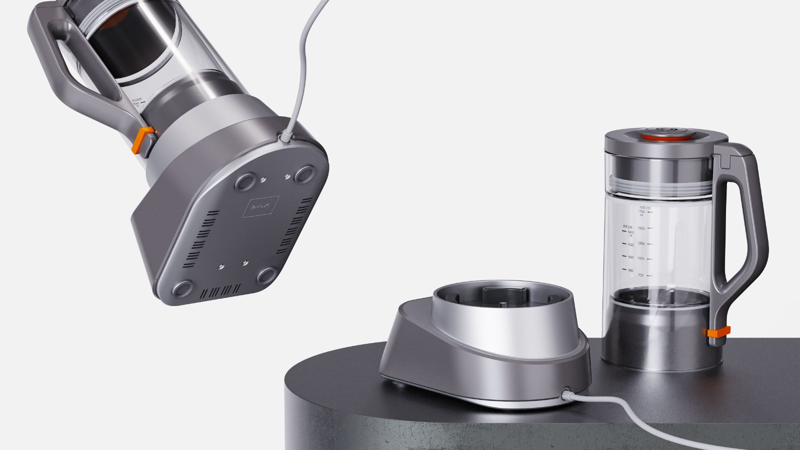 up desugn 以敏锐的市场嗅觉,成功捕捉市场的“风向变化”,通过更新颖、更具象化、高辨识度的外观设计,打破产品同质化严重的困境,以「智能化、可持续性」为概念,打造实用而富有创意的破壁机,保持统一的厨房家居美学。整体造型简约流畅,线条利索明快,无多余装饰,契合现代简约厨房家装风格,无论怎么摆放,都能与周围的环境融为一体,彰显用户的品味与格调。
