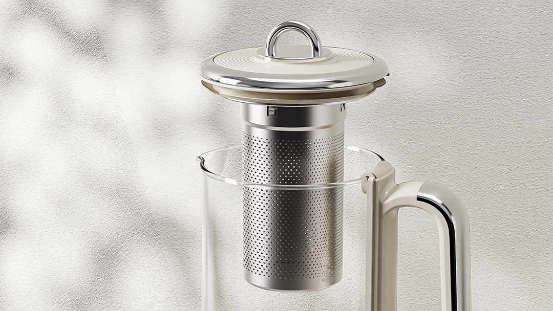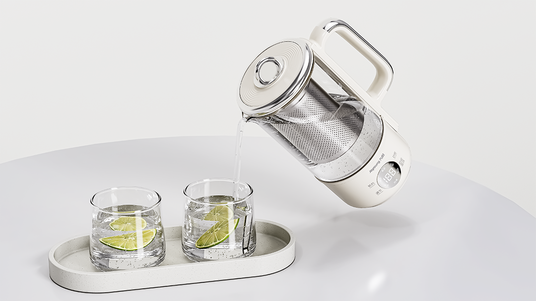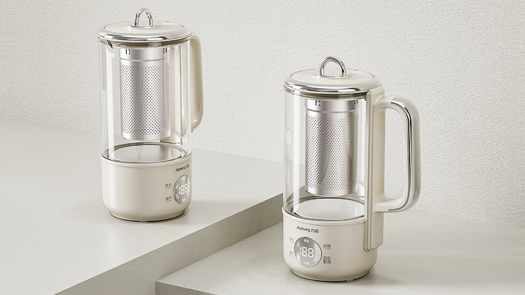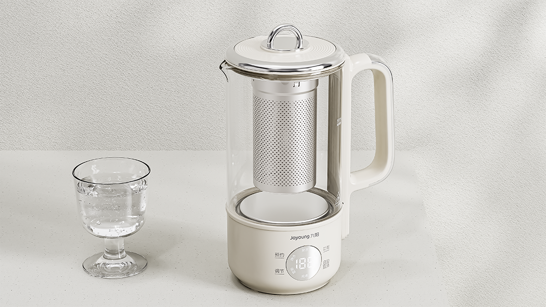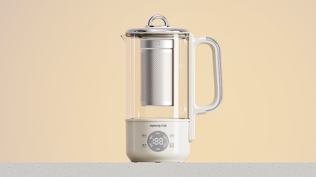 设计灵感来源于对“轻养生”生活方式的解读 —— 摒弃冗余,回归本真,让养生壶与生活场景自然融合,成为兼具实用与装饰性的家居伴侣。造型上,遵循简约大气的原则,整体呈圆润的壶型,给人一种柔和、亲和的感觉。外观通透纯净,它堪称“颜值担当”。玻璃壶身光滑细腻,光影下泛着柔和的光泽,搭配简约的配色,没有复杂的花纹堆砌,仅以造型本身的质感打动人,传递出 “less is more”的设计美学。