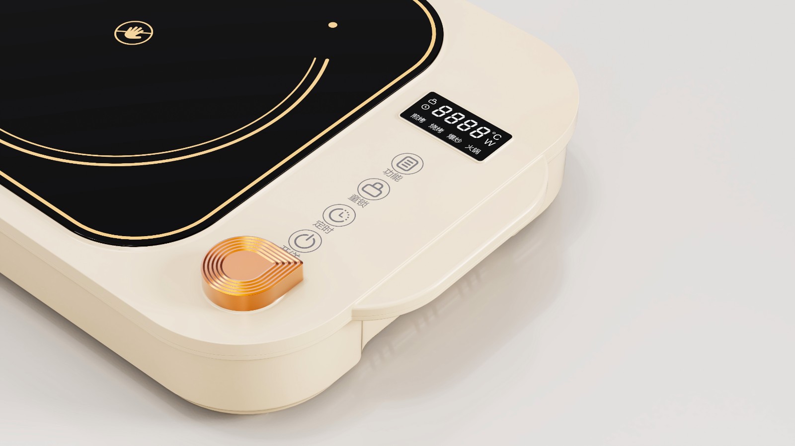 整体造型,我们选用类似“云朵”般蓬松圆润的形态来呈现,每一处导角都过度得十分自然。造型看起来可爱讨喜,更在视觉上营造出柔和、舒适的氛围。这种经典的温柔治愈系奶油色,像是给电陶炉披上了一层暖融融的“云朵衣”。纯净的奶油白主体,搭配沉稳的黑色微晶面板,简约耐看又高级。