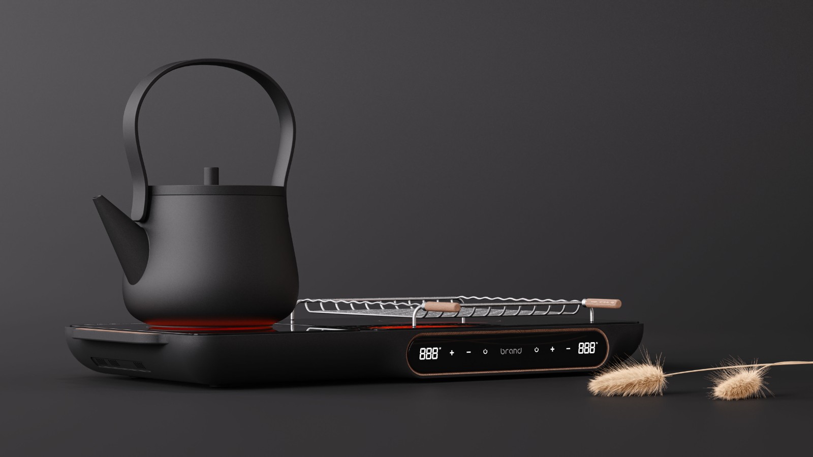 极简主义的运用,让产品线条简洁利落,展现出一种干净、纯粹的美感;而自然木质元素的加入,则为冰冷的家电增添了几分柔和与生机,仿佛在诉说着自然与生活的紧密联系。我们的目标人群,是那些对生活品质有较高追求的都市养生人群,他们往往更注重细节处的质感,希望产品不仅是工具,更是能提升格调的艺术品。up design 希望打破电陶炉“纯工具”的刻板印象,将烹饪这一充满生活气息的行为,通过艺术感外观的表达,让产品成为兼具实用与审美的生活方式。